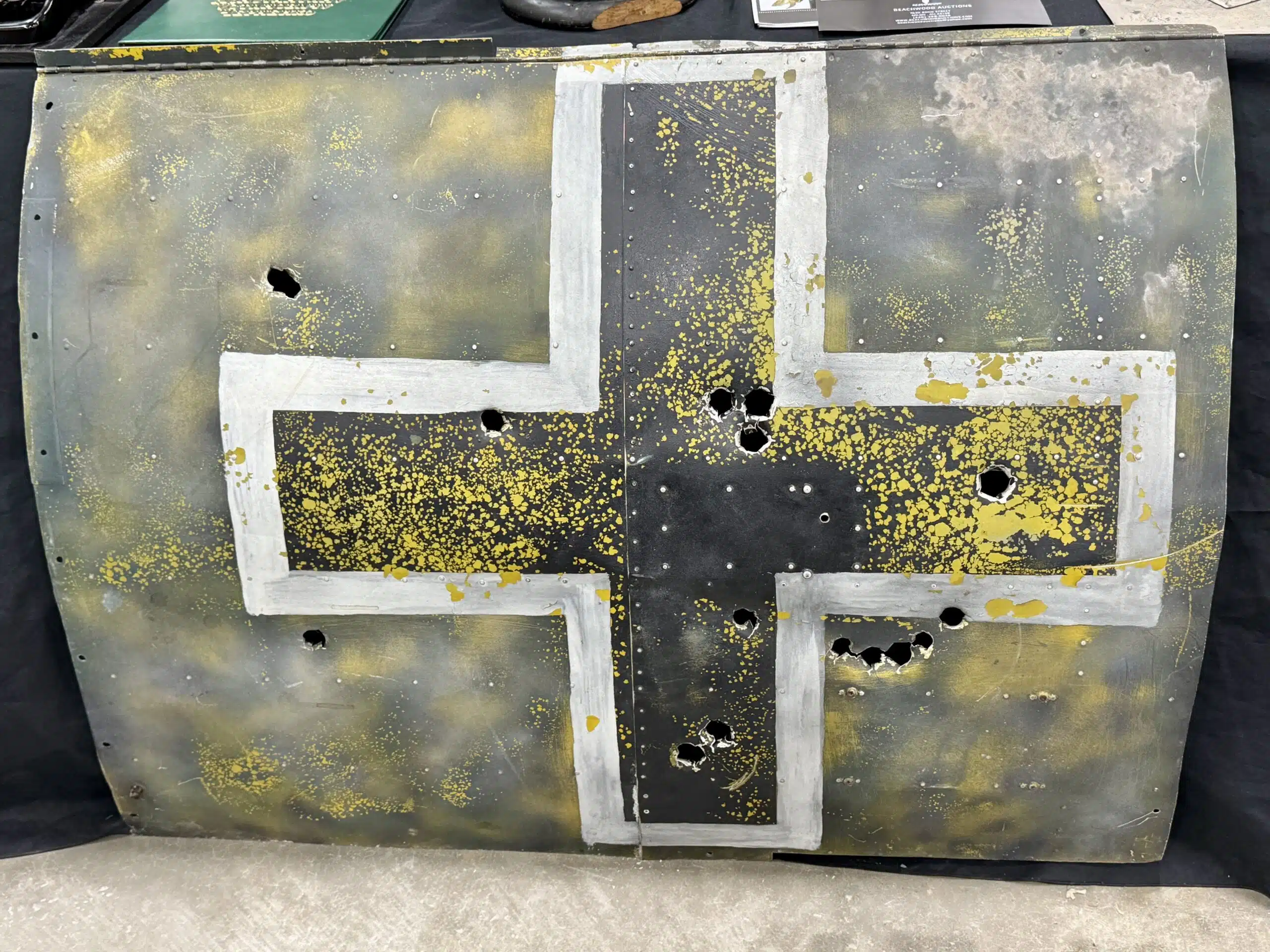 On a table filled with Soviet artifacts stood a Lenin prize and medal. Elsewhere, a pile of rusted German land mines. There was even a piece of the fuselage from a Luftwaffe plane. It bore the familiar balkenkreuz emblem—and the 15 bullet holes that presumably caused the aircraft’s demise.