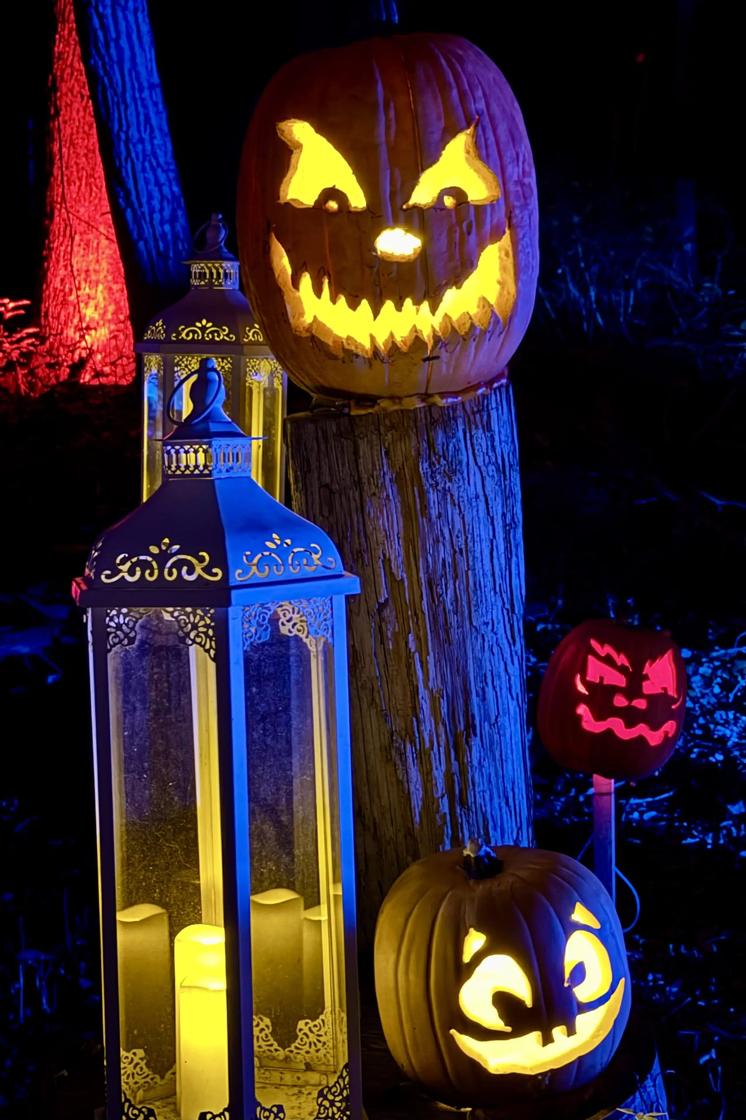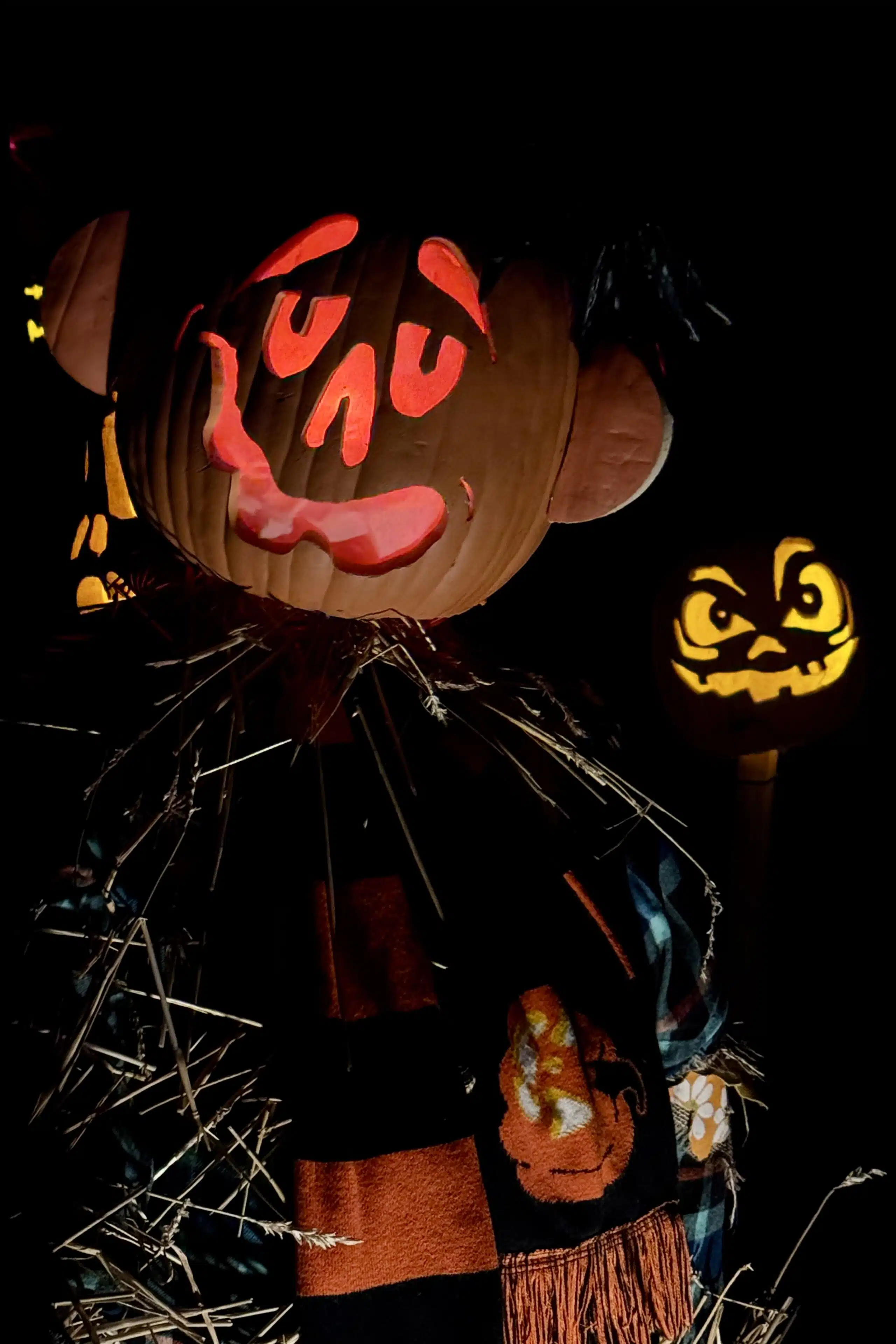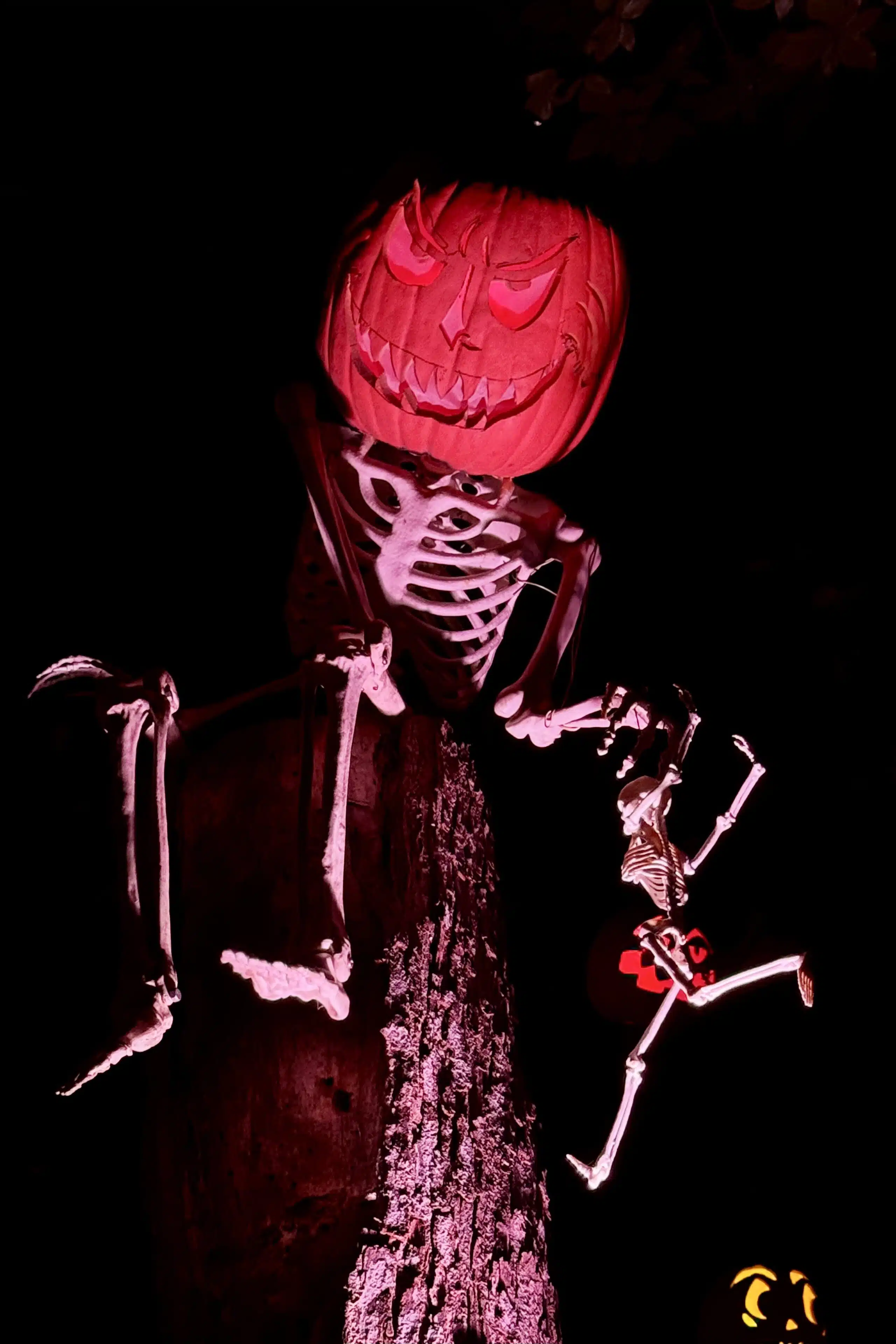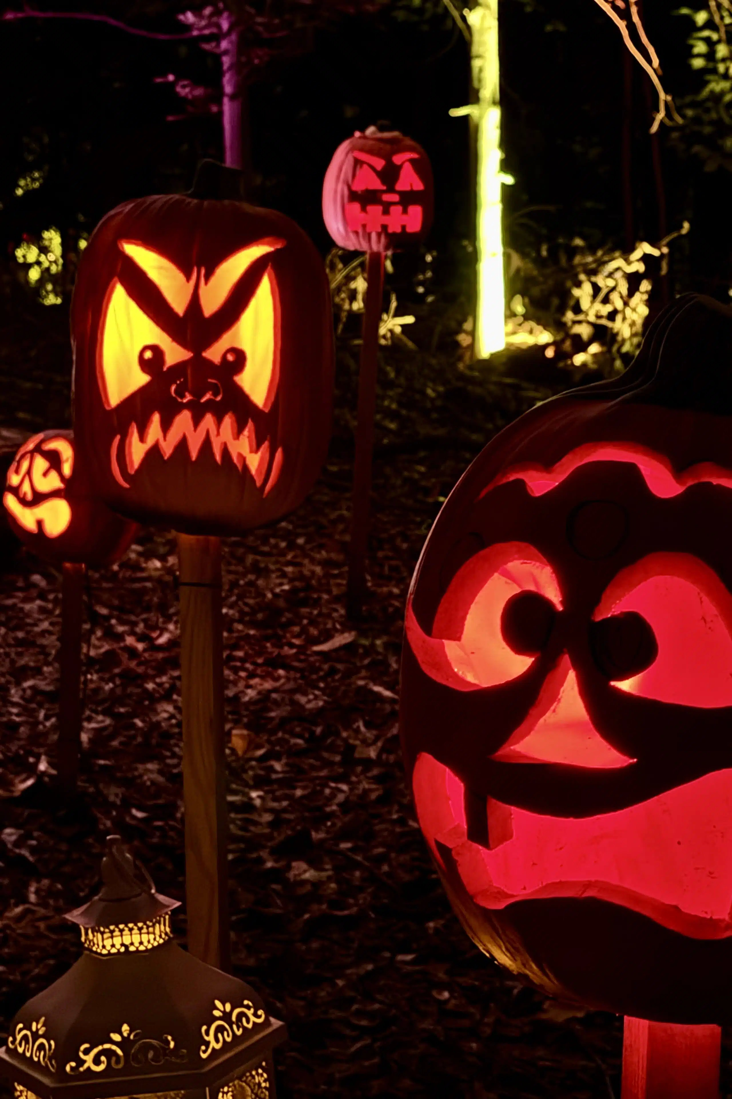 But the carving and internal illumination are only part of the equation. The finished products must then be arranged for maximum visual impact. You’ll find these organic works of art displayed individually, en masse in the hundreds, on lampposts, and in trees. Some are used as heads on scarecrows.